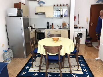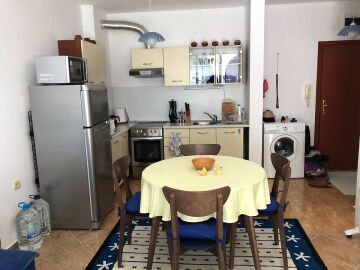Предлаганият апартамент се продава с хубави мебели и уреди, напълно обзаведен е и можете веднага да се нанесете.