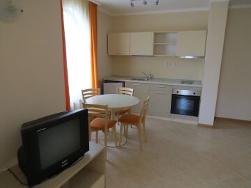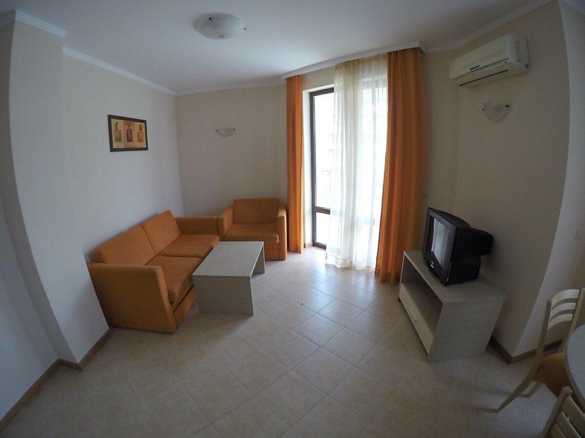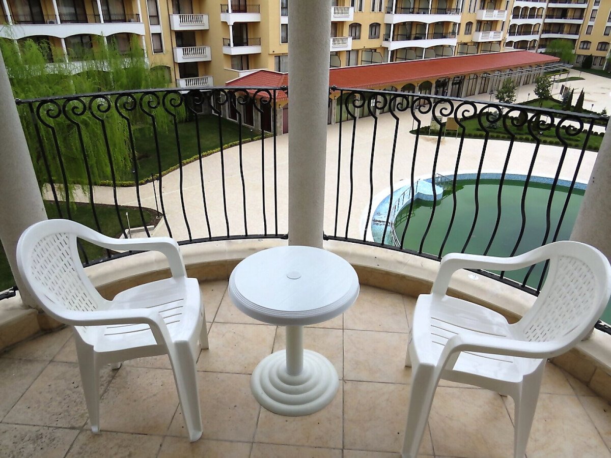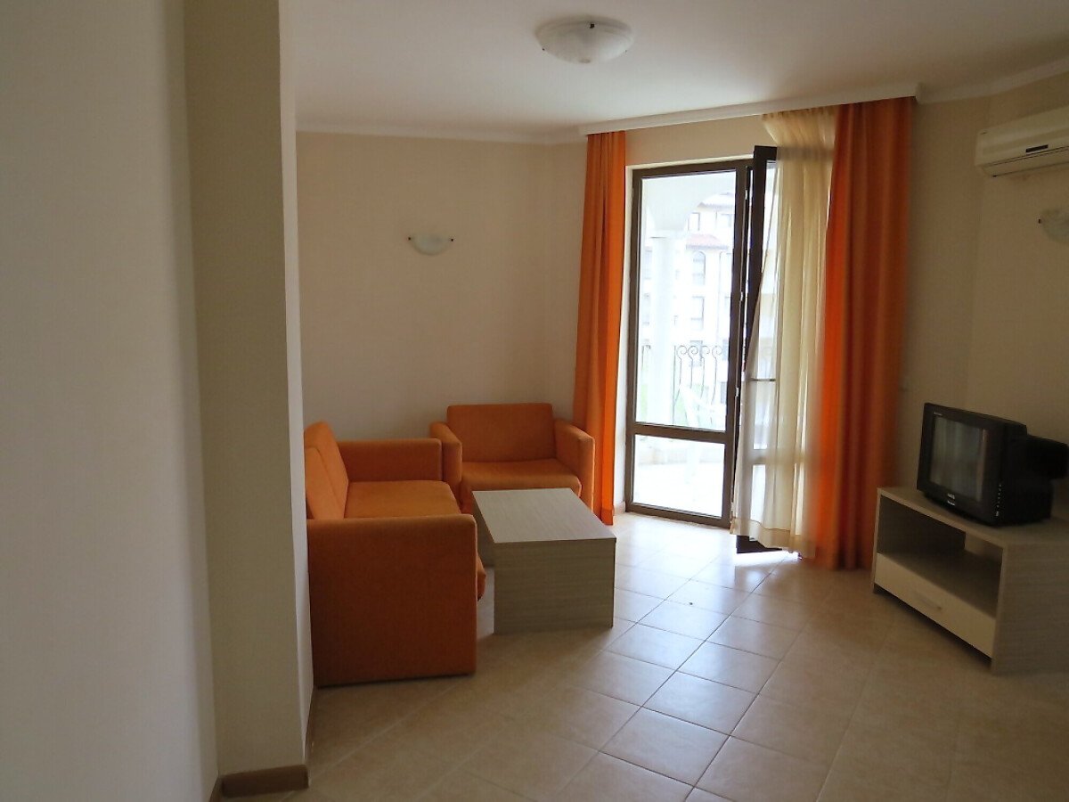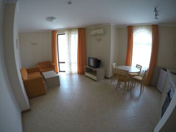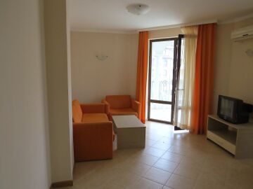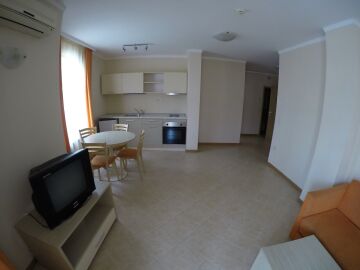 Апартаментът се намира в комплекс "Royal Sun" и се състои от две спални, просторна дневна с кухня, баня с тоалетна и разкошна тераса.