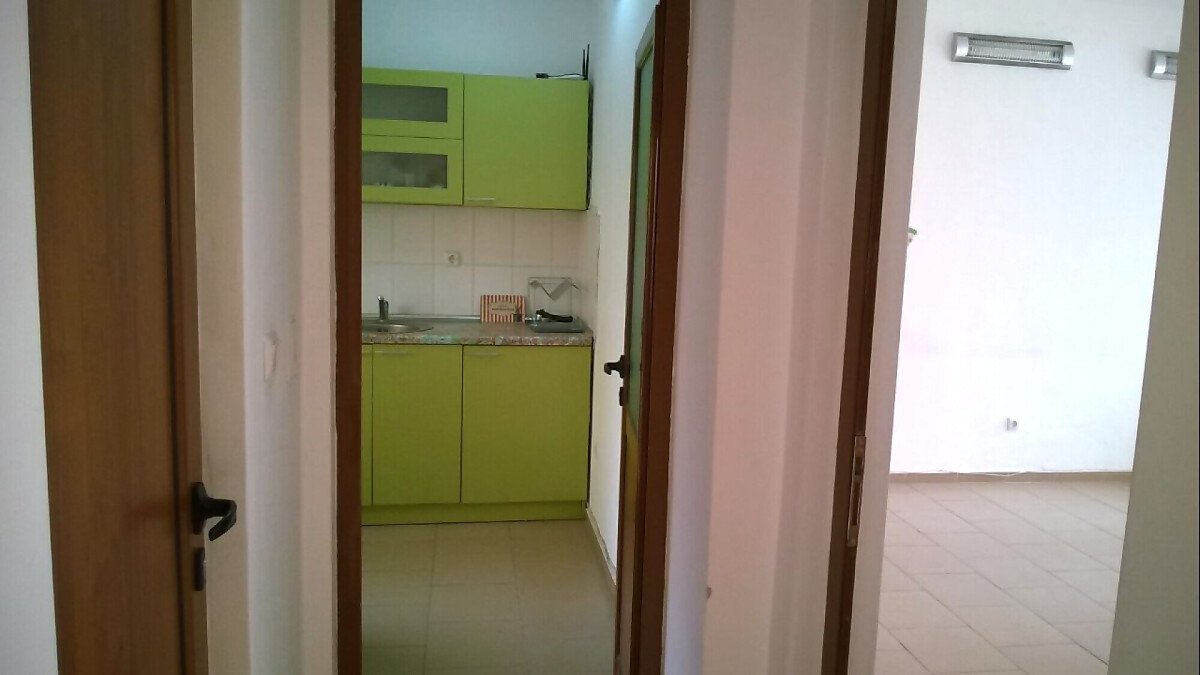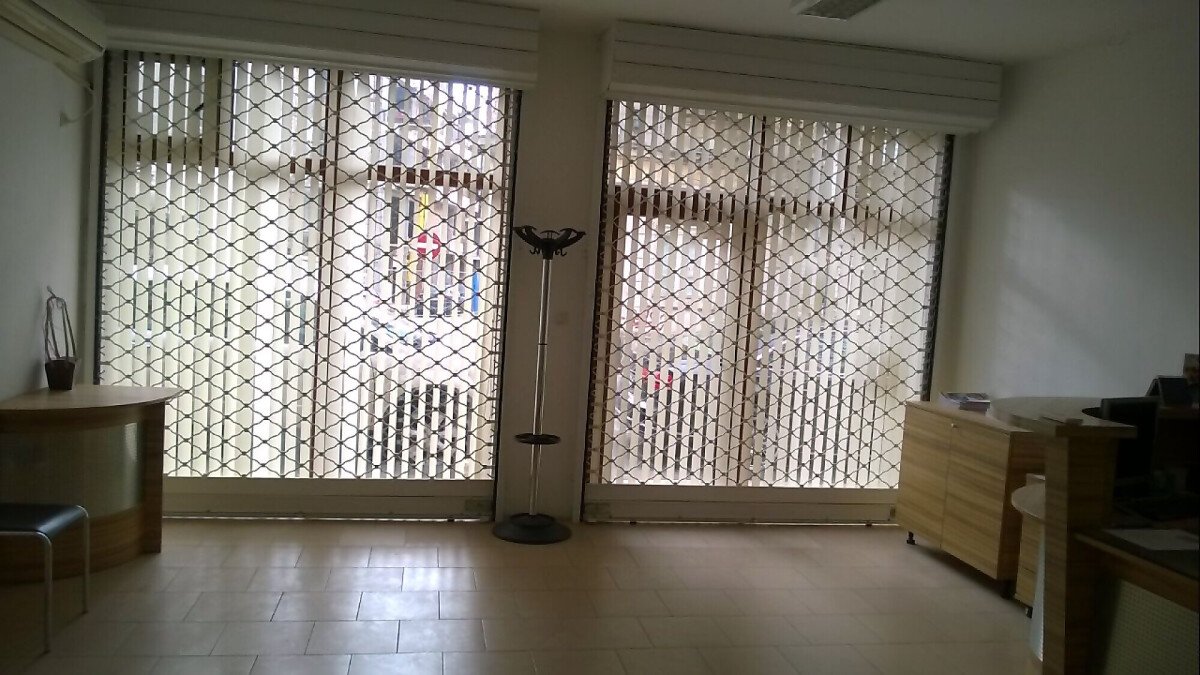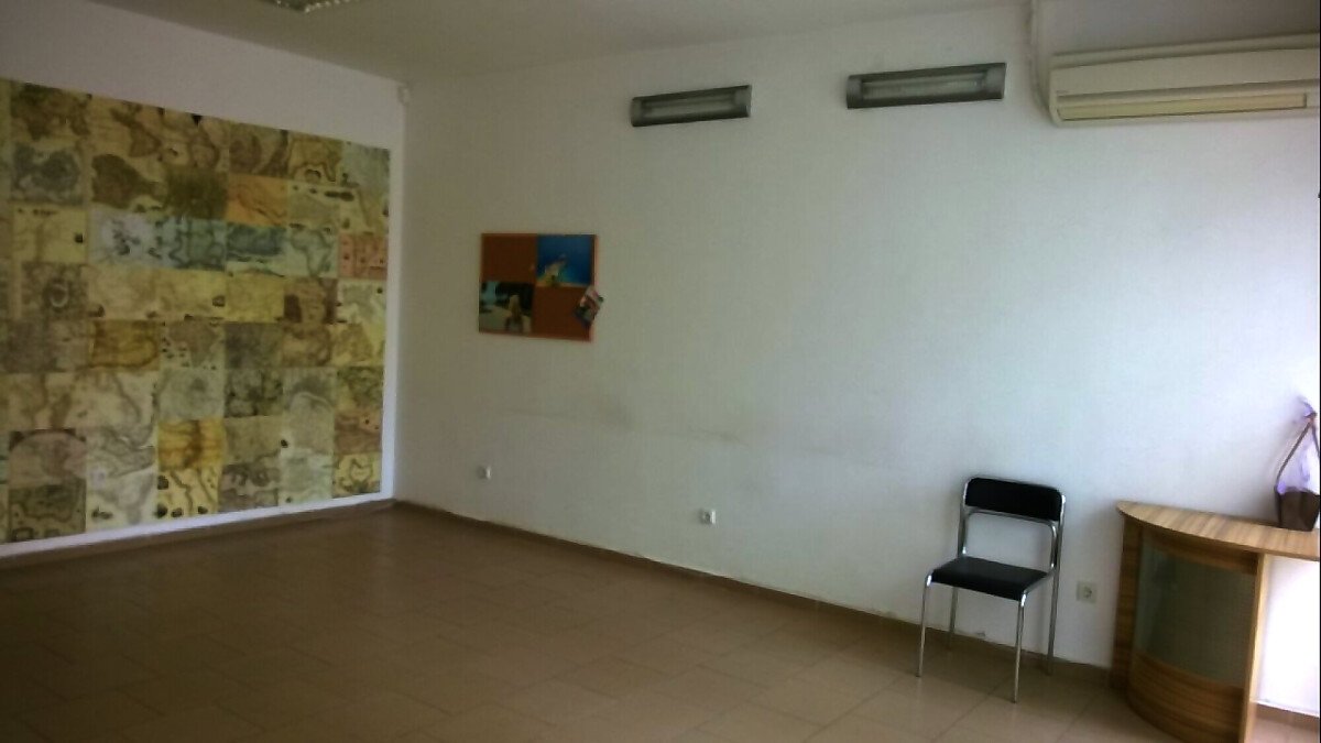 Площта му е 50 кв.м, има кухня, баня, два входа, метални решетки, охрана, интернет, климатик.