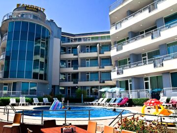 Хотел „Фаворит“ се намира в в южната част на Слънчев бряг, близо до Cаcао Beach. Предлага басейн, шезлонги, чадъри, ресторант, обмяна на валута, супермаркет.