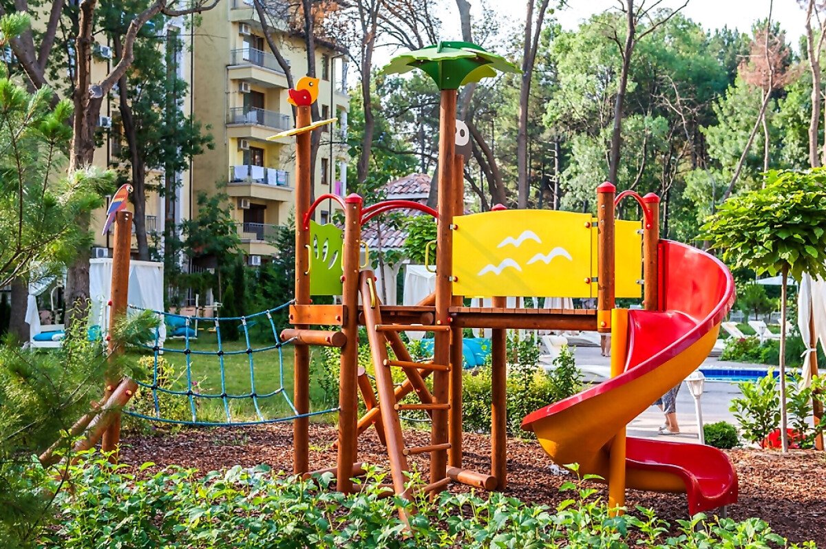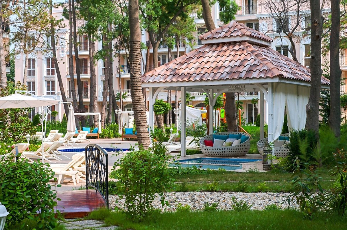 Шатри с балдахини, басейни и лагуни, екзотична градина с рекичка, детски площадки, фитнес на открито, всичко това може да ви накара да се почувставате като в приказка.