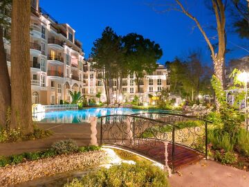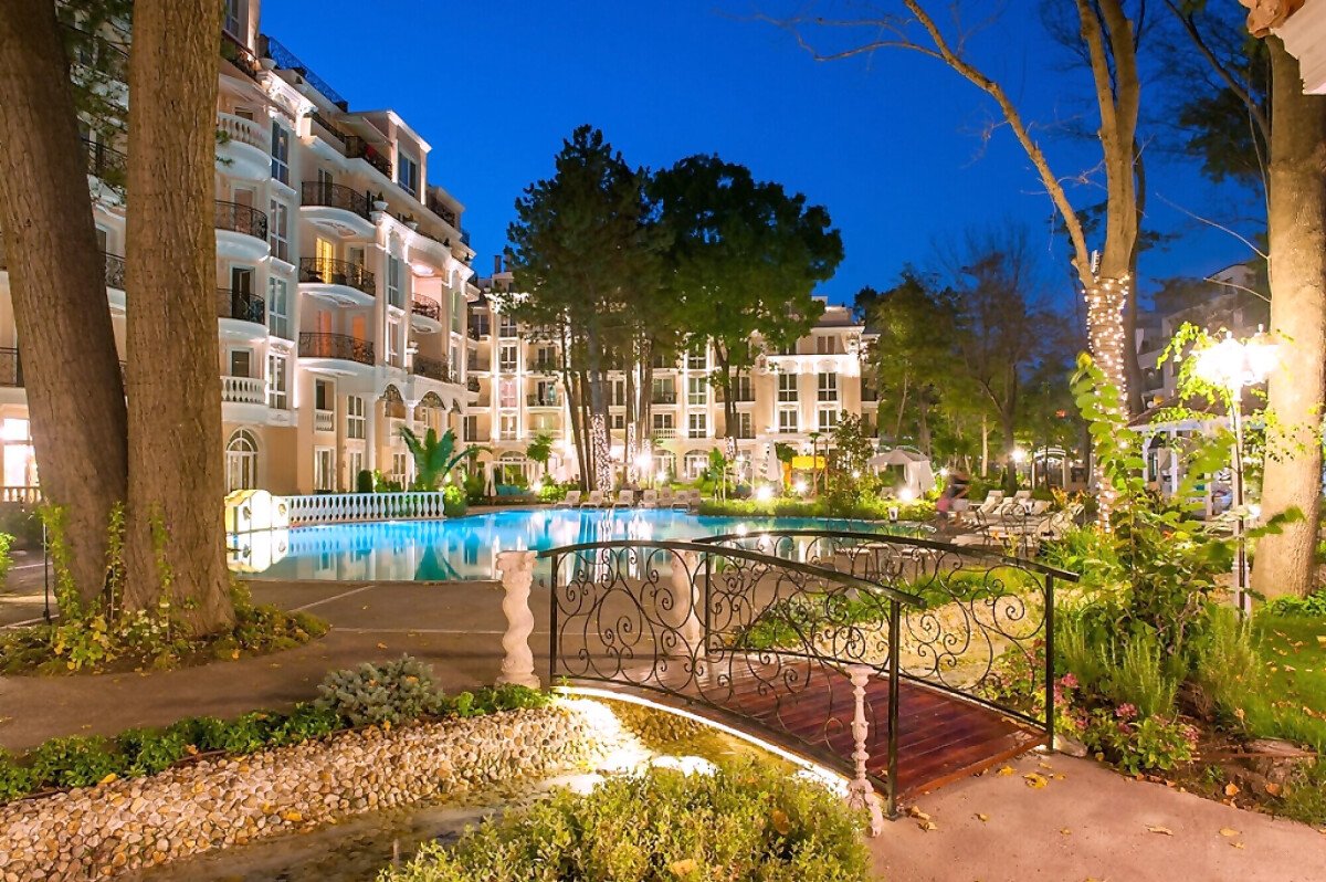 Комплексът ще Ви зашемети с уникалния си ландшафтен дизайн, уютна и елегантна обстановка и безкрайния списък от удобства, които предлага – открит басейн с водни атракции и подводни масажни легла, джакузи, балдахинови легла, екзотична градина с река, фонтани, беседки за отдих, открит фитнес и още много други.