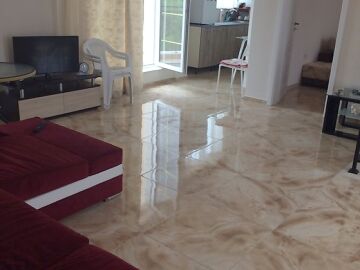 Апартаментът е напълно обзаведен и оборудван и предлага разкошни гледки към морето и територията на комплекса.