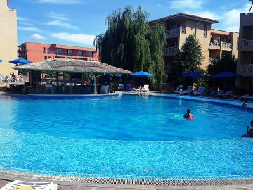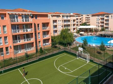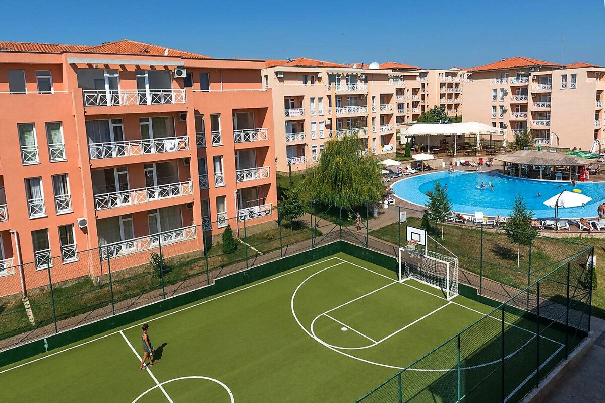 На територията му има голям плувен басейн, футболно игрище, градина, където можете да релаксирате, ресторант, бар и др.