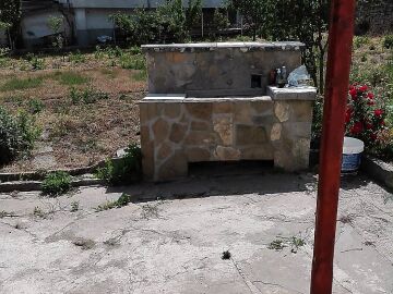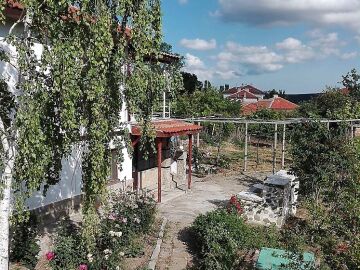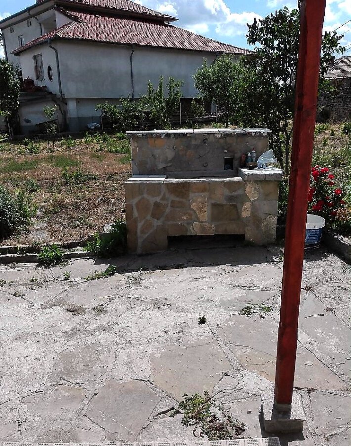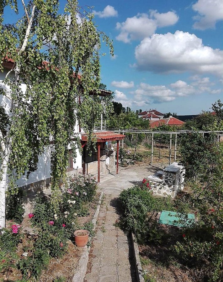 В двора има допълнителни постройки, лятна кухня и гараж за автомобили. В градината растат лозя и плодови дървета. Къщата е в добро състояние, готова за заселване.