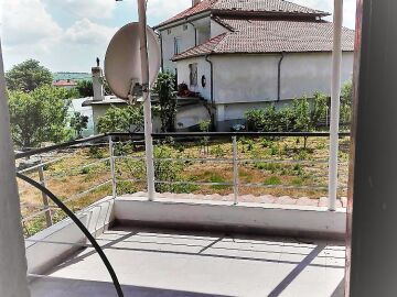 Застроената площ на къщата е 120 кв. м като на всеки етаж има по две стаи, баня и балкон.