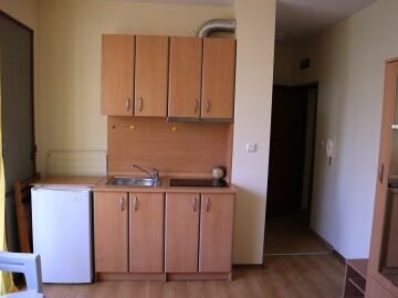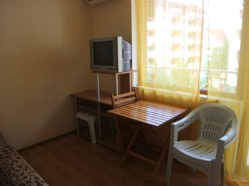 Апартаментът е разположен на трети етаж, предлага се обзаведен с двойно легло, гардероб, бюро, кухненски бокс.