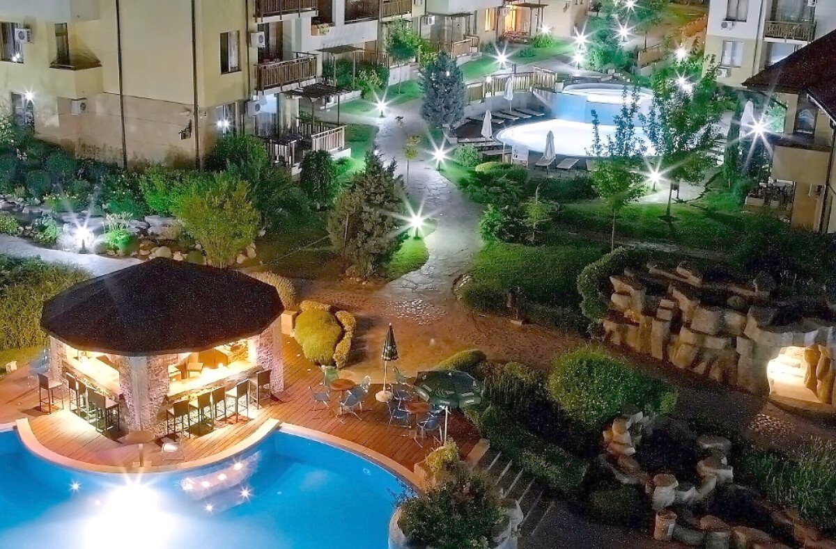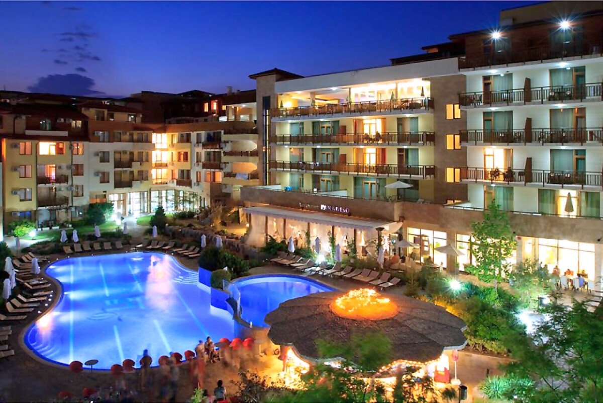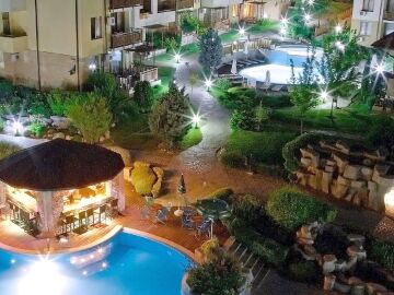 "Райската градина" е елитен петзвезден комплекс с площ 70 000 кв.м – красив и богато озеленен, един оазис на изяществото, лукса и комфорта разположен край морето и предлагащ невероятна гледка към Стария Несебър.