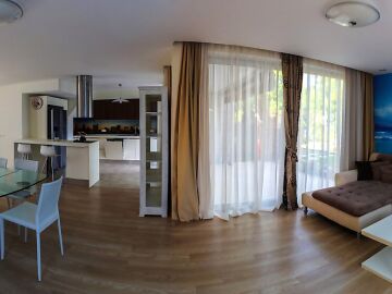 Тази уникална къща има изключително стилен интериорен дизайн и е обзаведена с качествени луксозни мебели от водещи немски, австрийски и италиански производители.