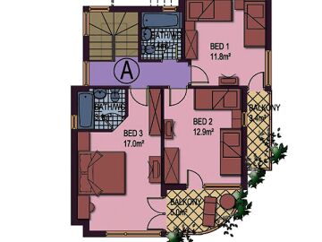 Площта на къщата е 143 кв.м и се състои от два етажа, разполага с три спални – всяка от които е със собствена баня с тоалетна, разкошна всекидневна с кухня и тераси с великолепна панорамна гледка към морето.