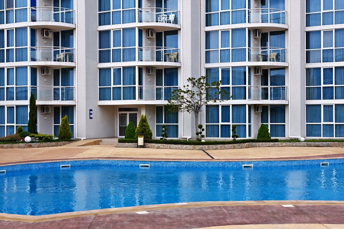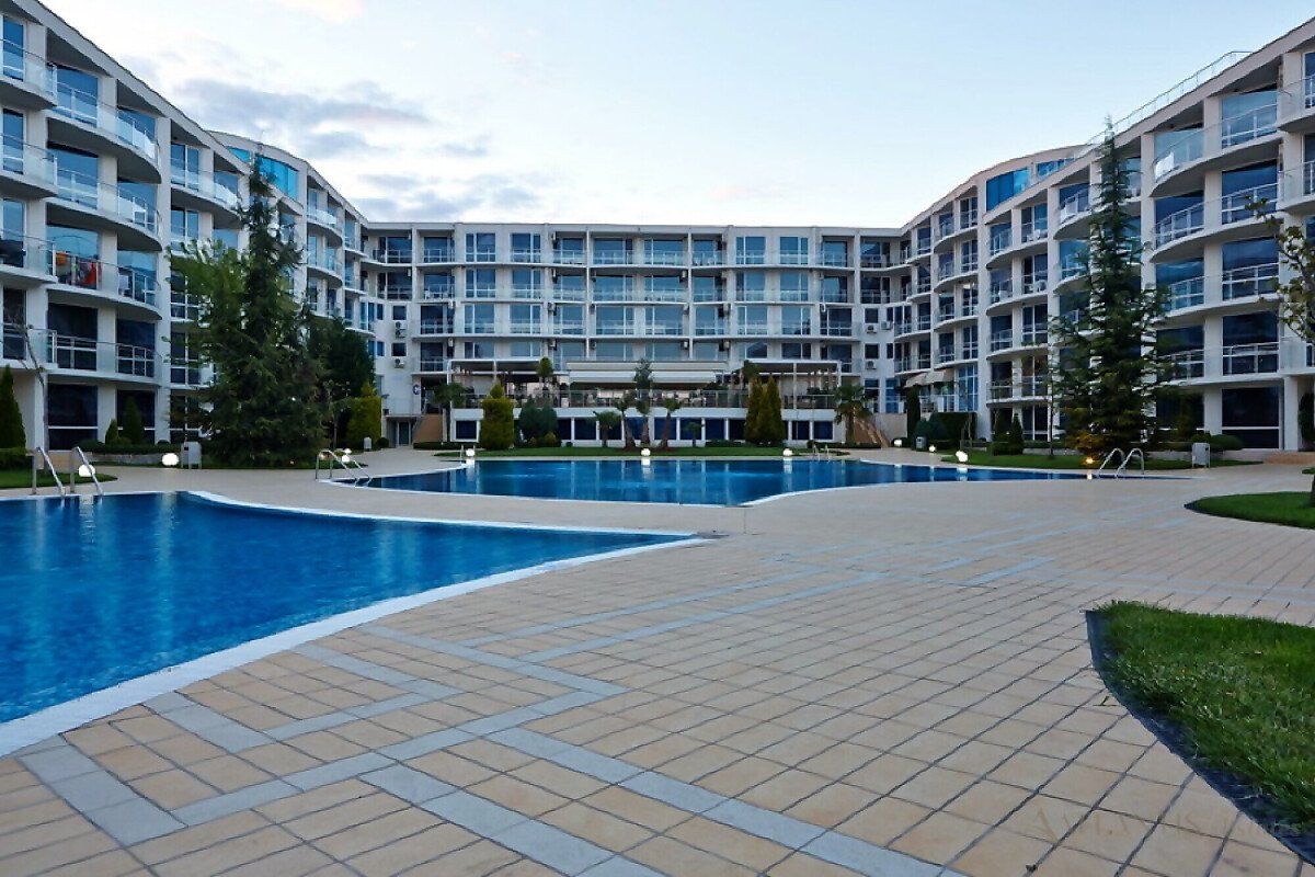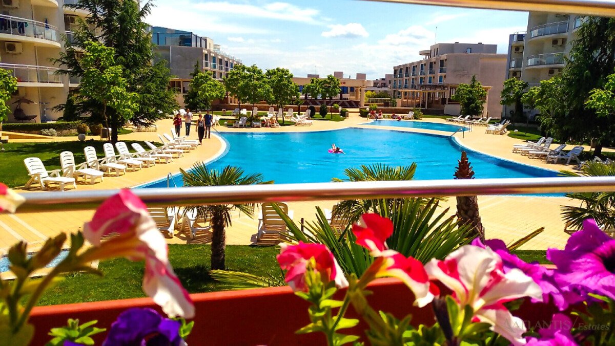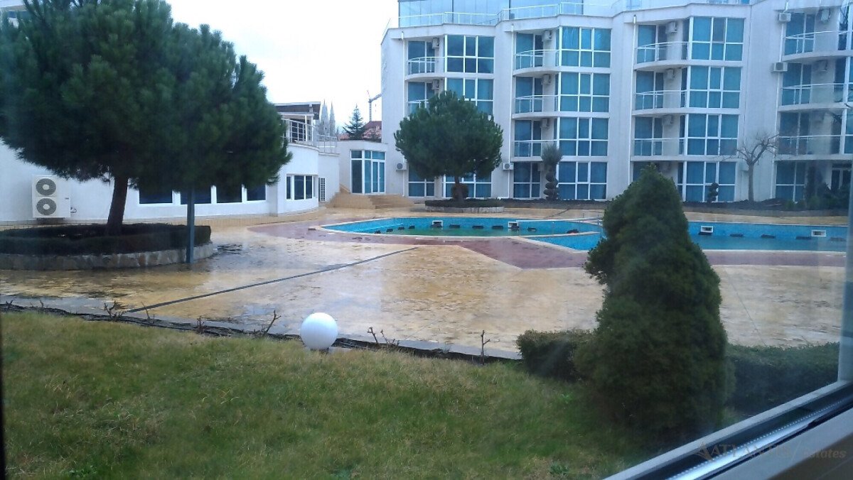 Апартаментът е с изглед към басейна и се продава напълно обзаведен и оборудван.