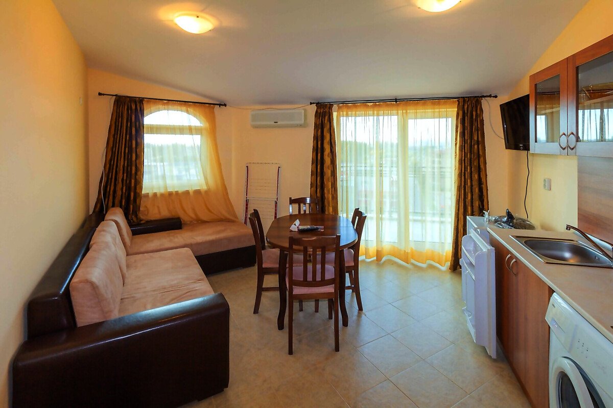 Апартаментът се предлагат напълно обзаведен и оборудван с необходимите елктроуреди, можете да се нанесете веднага без да е необходимо да мислите за ремонти, мебели и обзавеждане.