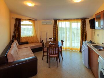 БГ ПРОПЪРТИ ИНВЕСТ има удоволствието да Ви представи една страхотна оферта – двустаен апартамент в красивия комплекс "Каролина" в курортния град Слънчев бряг.