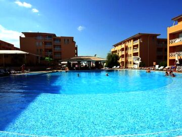 Комплексът на територията си разполага с пет големи басейна с място за деца, красива озеленена градина, голям тенис корт и футболно игрище, детска площадка и паркинг.