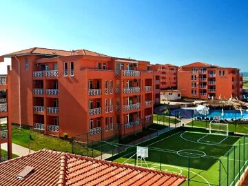 Комплексът предлага редица развлечения, спортни игрища, плувен басейн, детска площадка и много зелени площи.