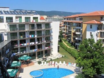 Комплексът се намира в западната част на курорта, на 400 м от морето и близо до всички забавления и атракции, които предлага Слънчев бряг. Тук можете да се наслаждавате на плувен басейн, бар край басейна, ресторант, панорамни стъклени асансьори, паркинг за коли, денонощна охрана.