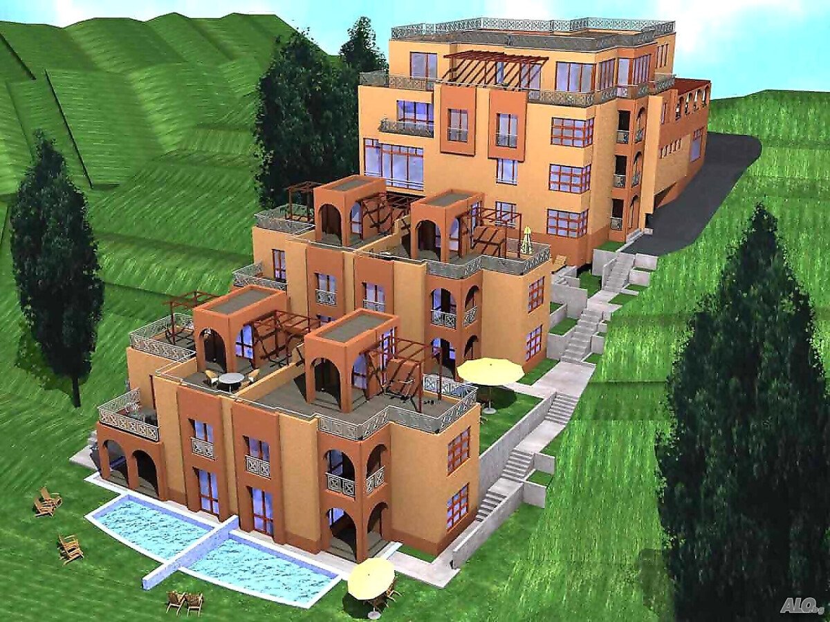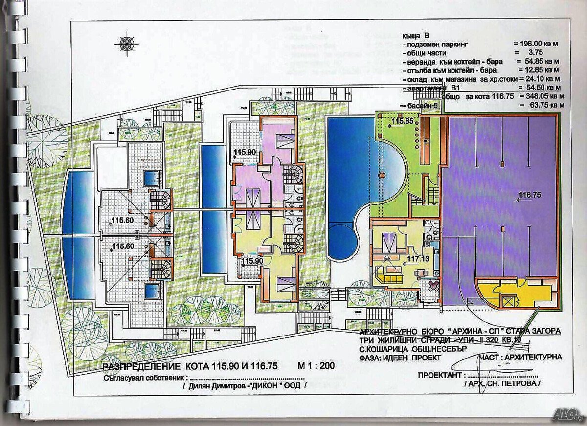 Представяме на Вашето внимание нов инвестиционен проект - парцел с готов проект за строеж на 4 къщи и 8 апартамента, търговски площи и басейн.