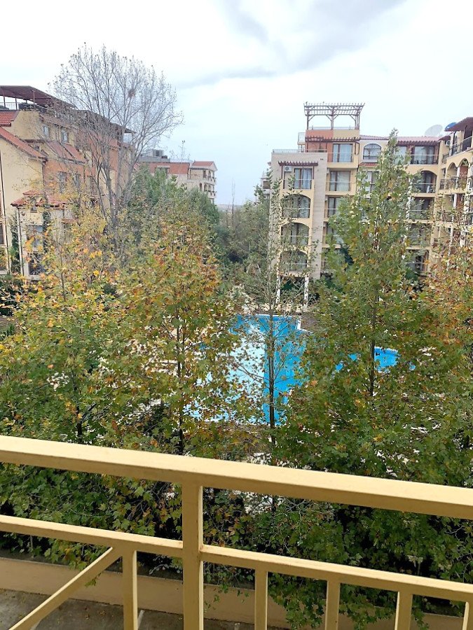 Апартаментът е едноспален и е обзаведен, с площ от 67.00 кв. м - има изглед към басейна на комплекса.