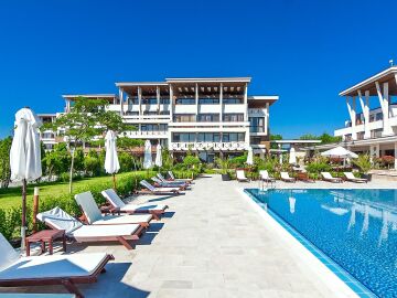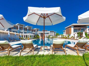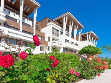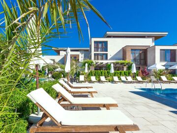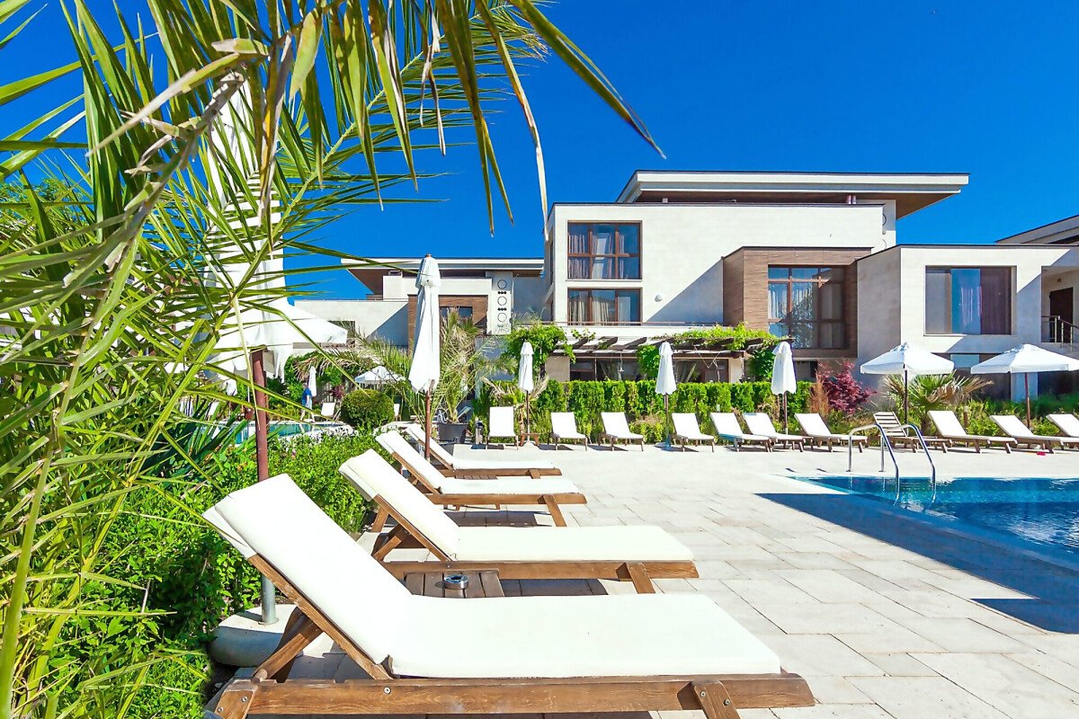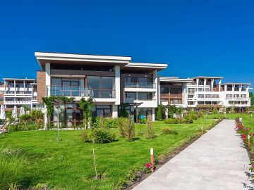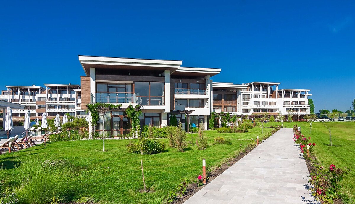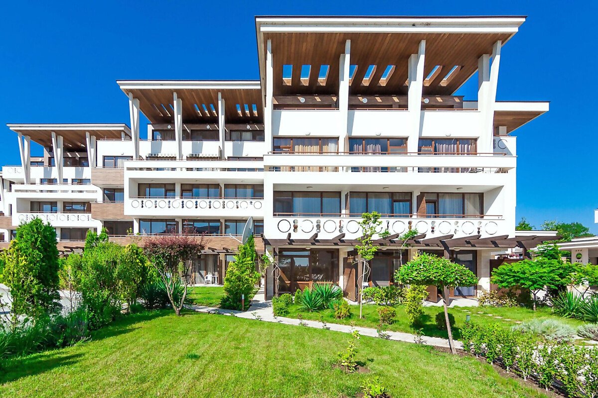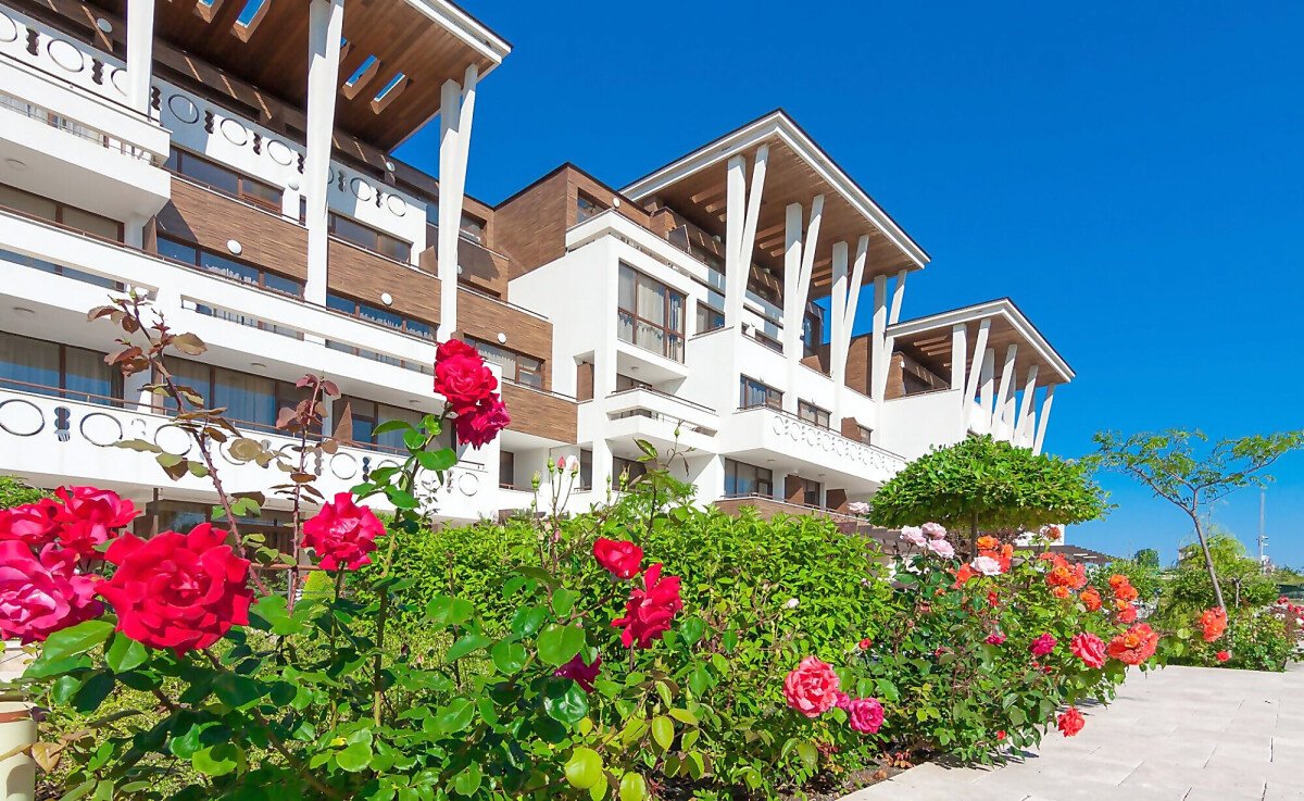 Архитектурата на комплекса е съвременна, а озеленената градина, която се слива заедно с брега на морето, придава още повече разкош.