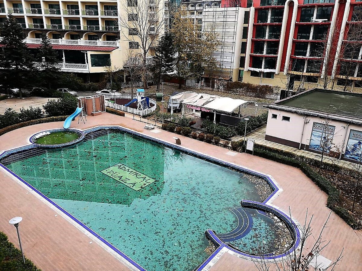 “Адмирал Плаза” се намира на пет минути пеш от центъра на известният курорт Слънчев бряг и предлага много удобства на своите гости и собственици : голям басейн - за възрастни, с отделна част за деца, лоби - бар, СПА център.