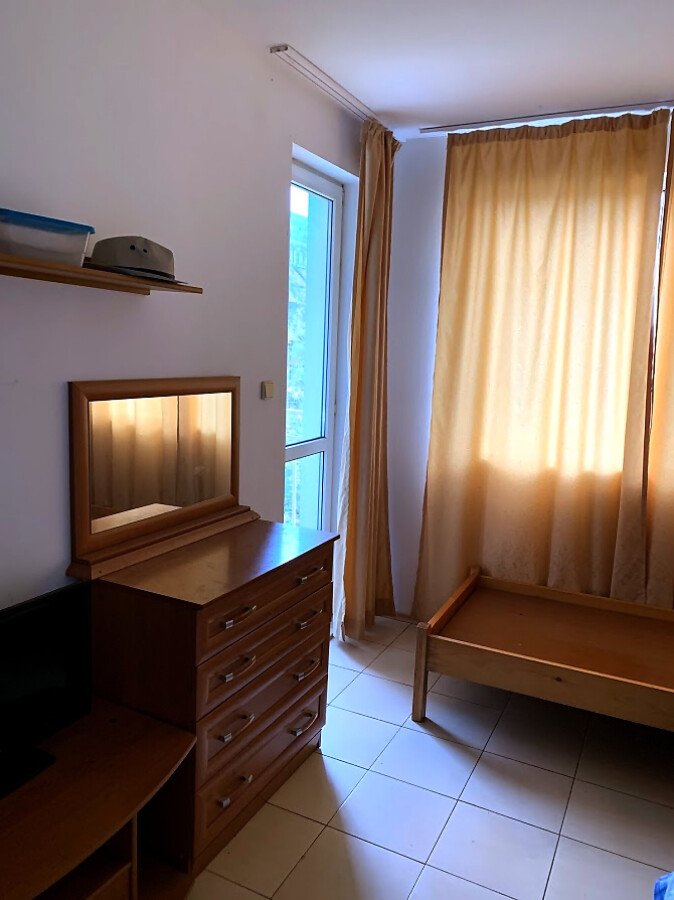 Апартаментът е едноспален и частично обзаведен - разполага с отделна кухня и баня с тоалетна.