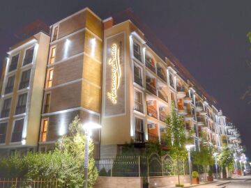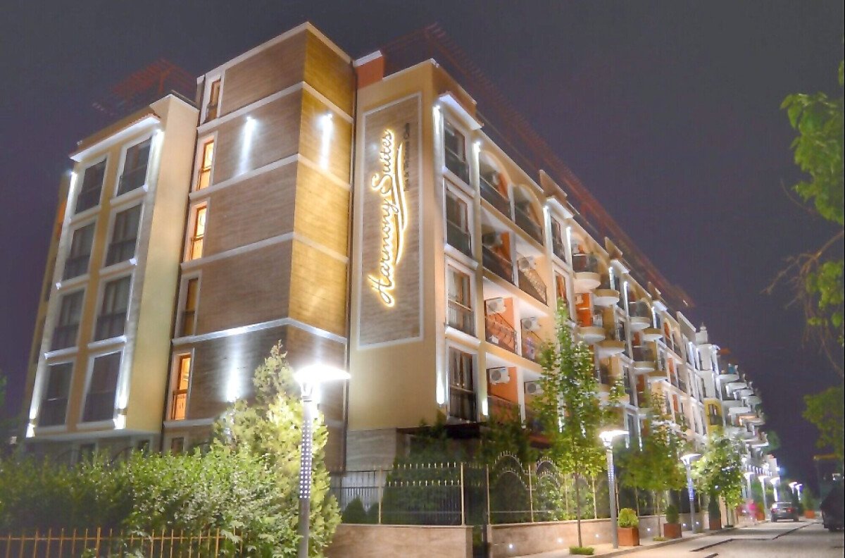 “Хармони Суитс 2” впечатлява със своята изтънчена архитектура и дизайн в класически стил и топли пастелни цветове.