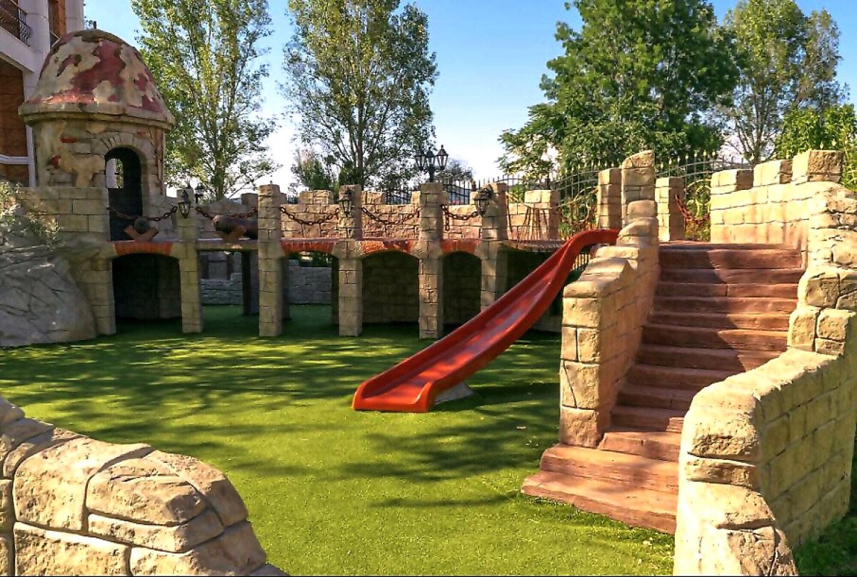 Има модерен открит басейн с хидро - електролизна система за пречистване на водата, а за останалите удобства и преимущества, можете да прочетете в описанието за комплекса, на страницата ни по- долу.