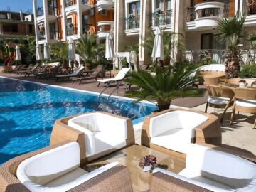 Благодарение на добре развитата инфраструктура на курорта, който е предпочитана дестинация за семейна или индивидуална почивка край морето, както и на преимуществата на комплекса, в “Хармони Палас” може да се живее и целогодишно.