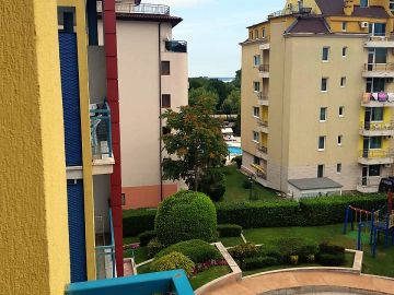 Намира се в комплекс 'Елит", който предлага множество удобства като: два басейна, ресторант, фитнес зала, медицински кабинет, детска площадка и подземен паркинг, охрана и поддръжка.