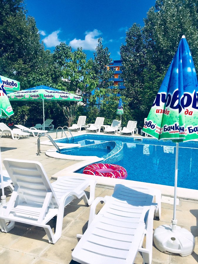 На територията на комплекса има плувен басейн с детска зона, шезлонги, бар, интернет. Предлагат се услуги като рум сервиз, пране на дрехи и др.