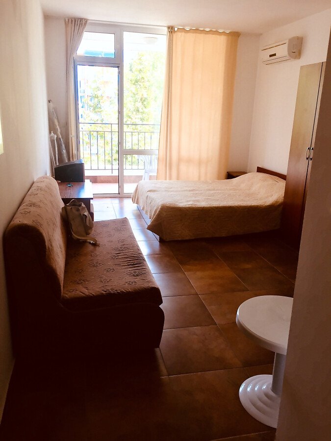Предлага се за продажба апартамент тип студио в тиха част на Слънчев бряг – най-известният български черноморски курорт.