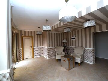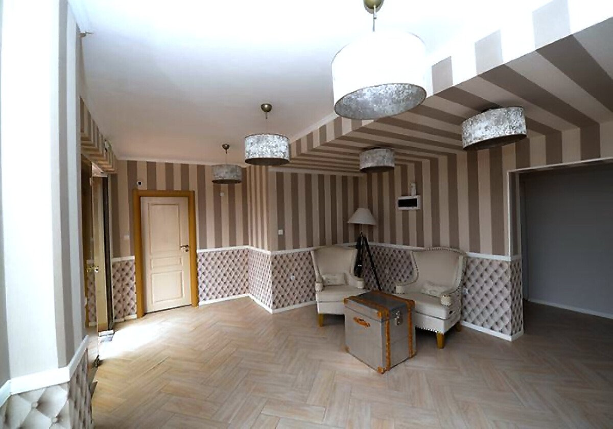 Апартаментът е с площ 72.08 кв. м и е с изглед към парка на хотела.