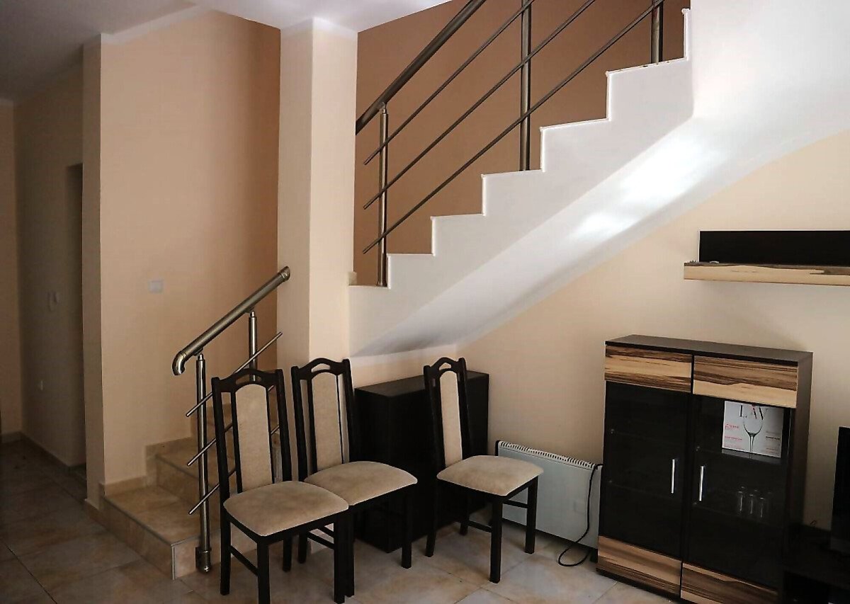 На първият етаж : обзаведена кухня с техника и кухненски шкафове, заедно с трапезария и хол, баня и тераса.