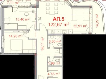 Апартаментът е триспален и необзаведен.