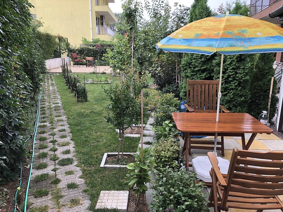 На територията си разполага с прекрасна озеленена градина и паркинг за автомобили.