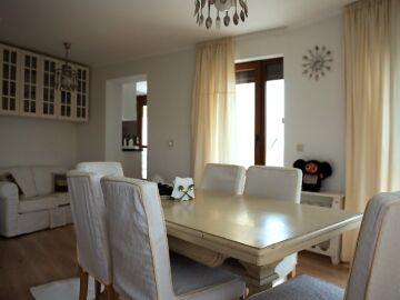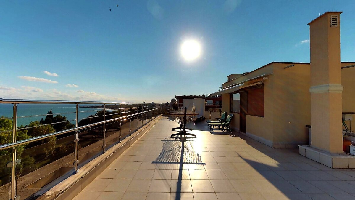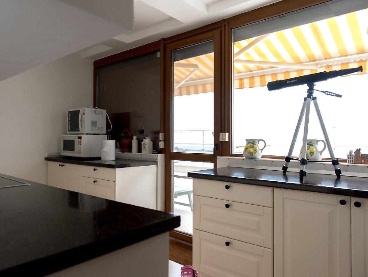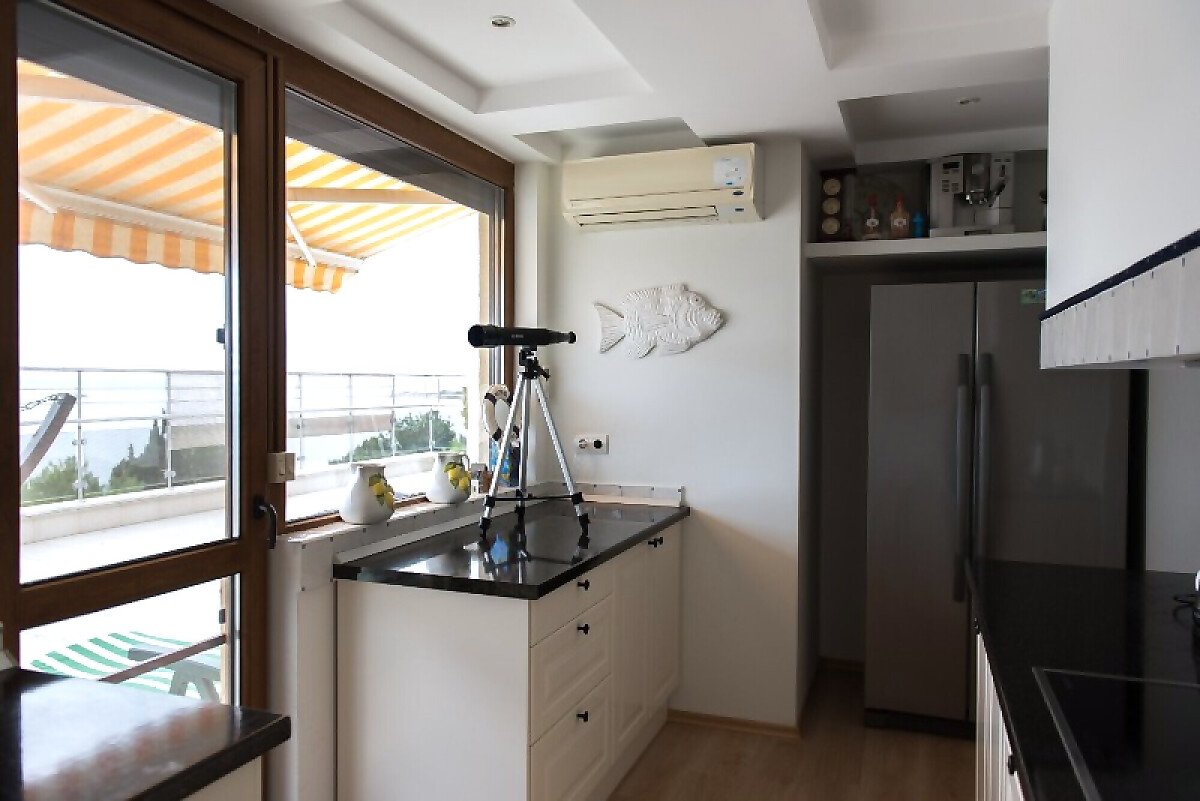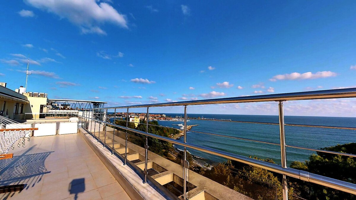 Жилището се състои от кухня с трапезария, три спални, две бани с тоалетна и огромна тераса с уникална гледка към морето и Старият град на Несебър.
