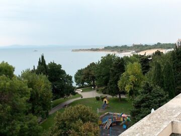 Комплексът е разположен на първа линия от морето и можете да се наслаждавате на красиви панорамни морски гледки, разхождайки се из озеленената градина на комплекса.