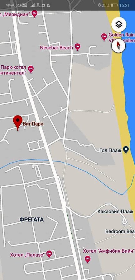 Жилището се намира в комплекс “ВИП Парк”, който се намира на 800 м от популярният елитен плаж “Какао Бийч” и на 2.5 км от “Екшън Аквапарк Съни Бийч”.