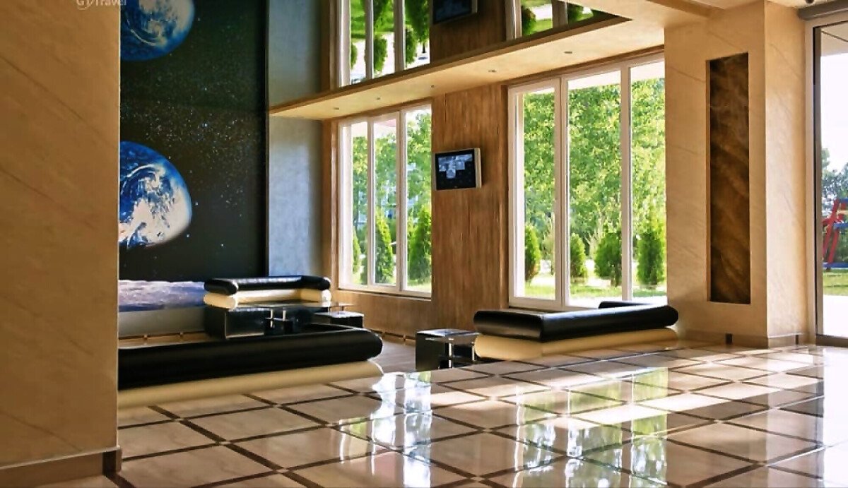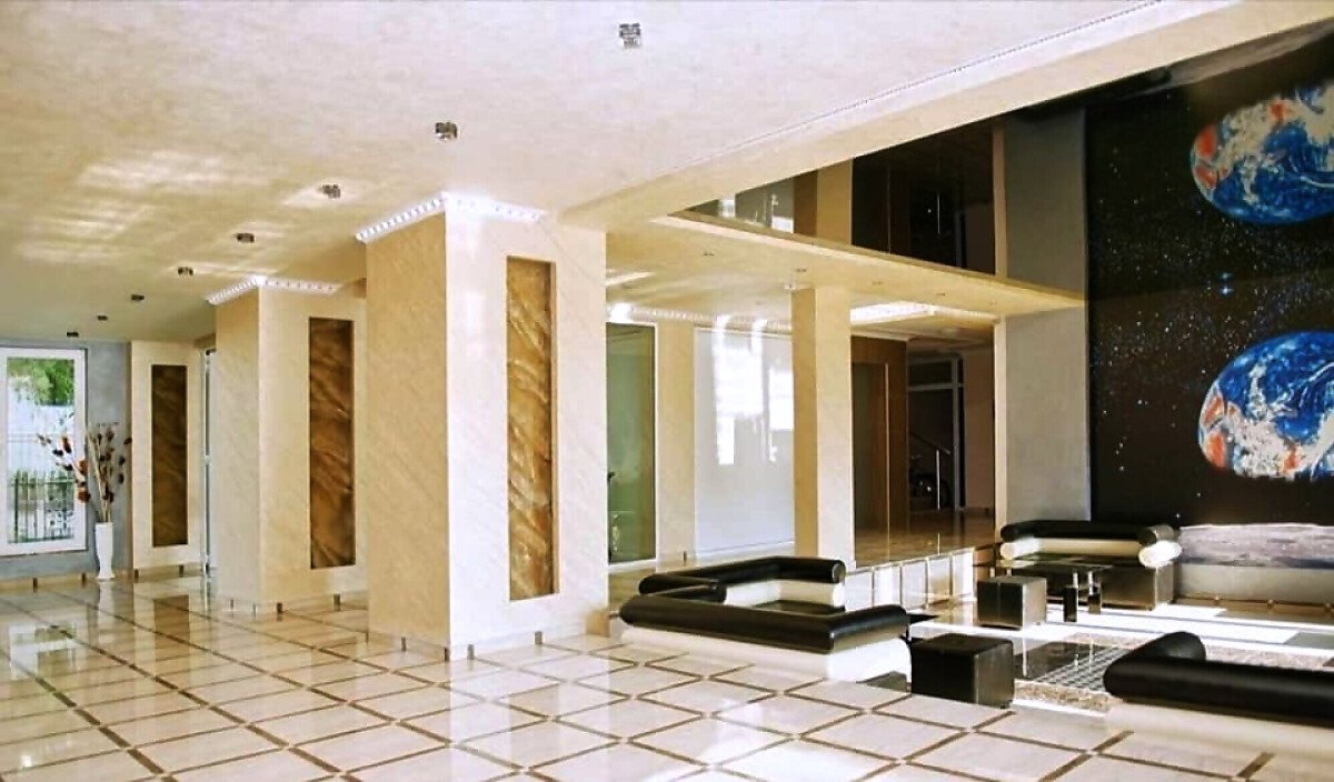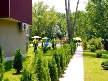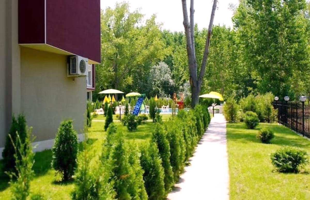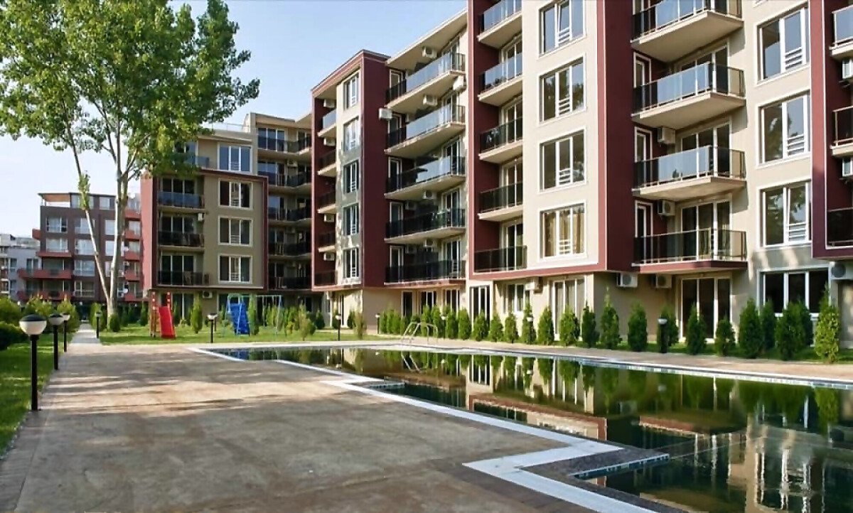 Комплексът представлява голяма сграда с асансьор и на територията си има голяма озеленена градина, басейн, детска площадка, паркинг и охрана.