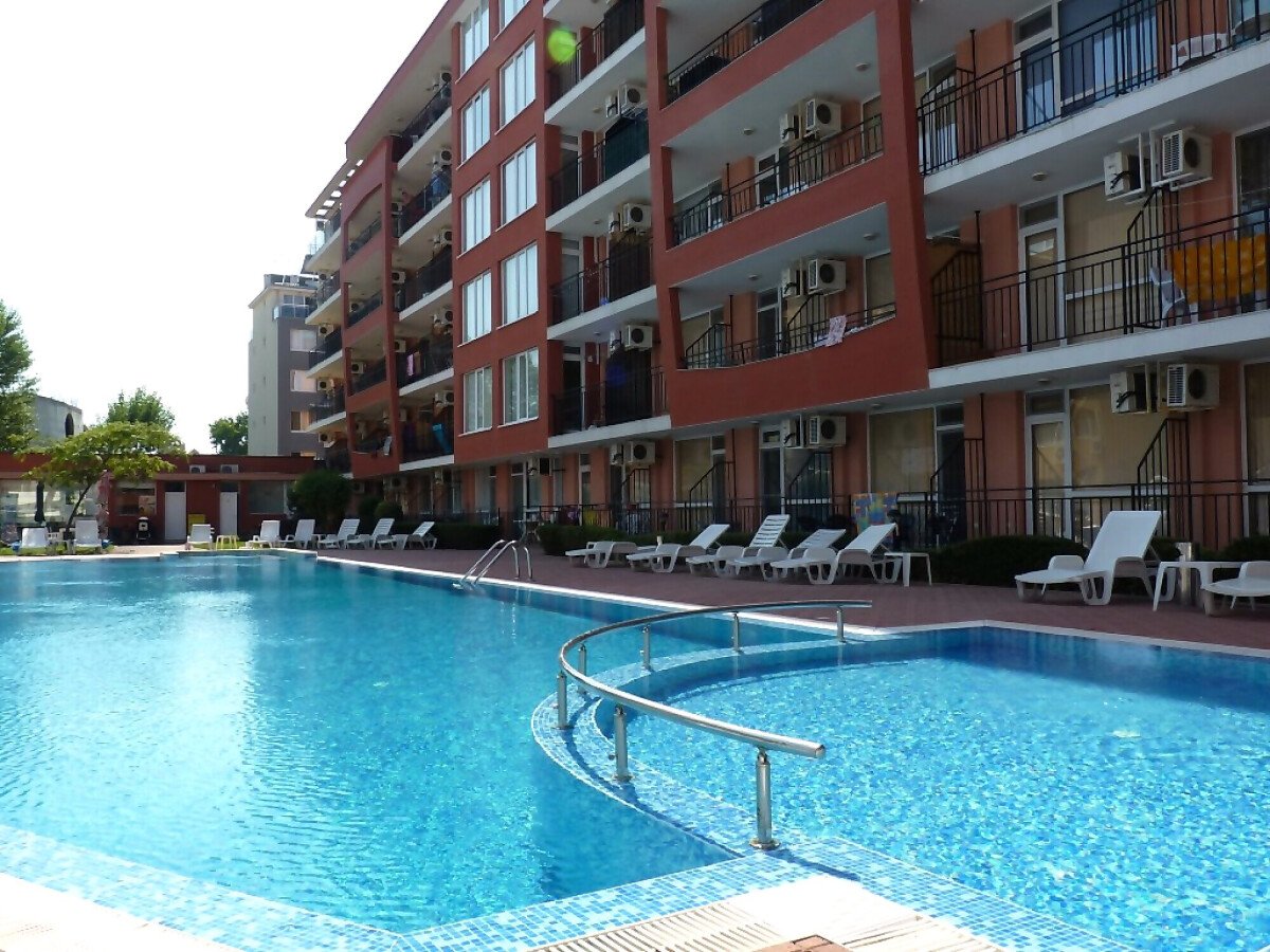 Комплекс “Сънсет Бийч 4” разполага с басейн, бар, градина, паркинг и други удобства.