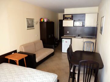 Предлагаме Ви за продажба чудесно студио, което се намира в комплекс “Сънсет Бийч 4” в курортният град Слънчев бряг.