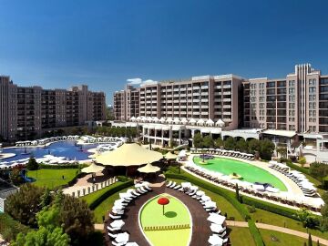 “Роял Бийч Барсело” е луксозен и има модерна и стилна архитектура и се намира в центъра на курорта.