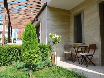 Апартаментът разполага с изглед към двора на комплекса.