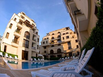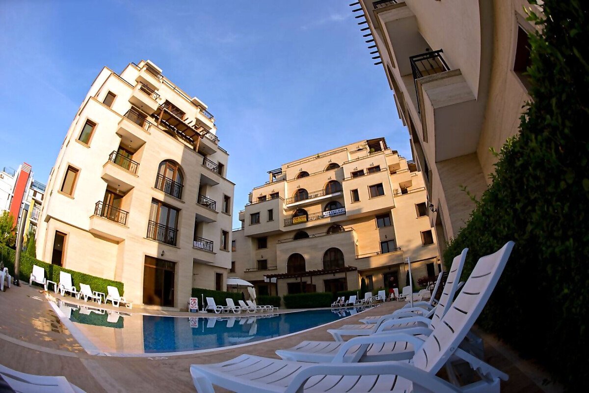 Комплексът притежава красиви озеленени площи и разполага с басейн, мини - маркет, безплатен безжичен интернет, паркинг и охрана.