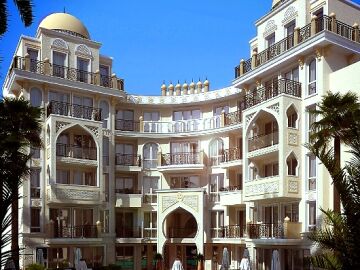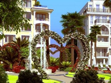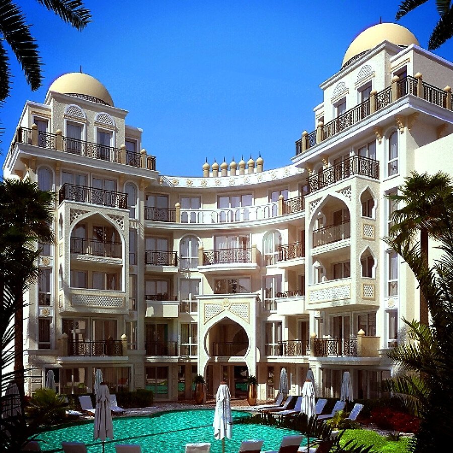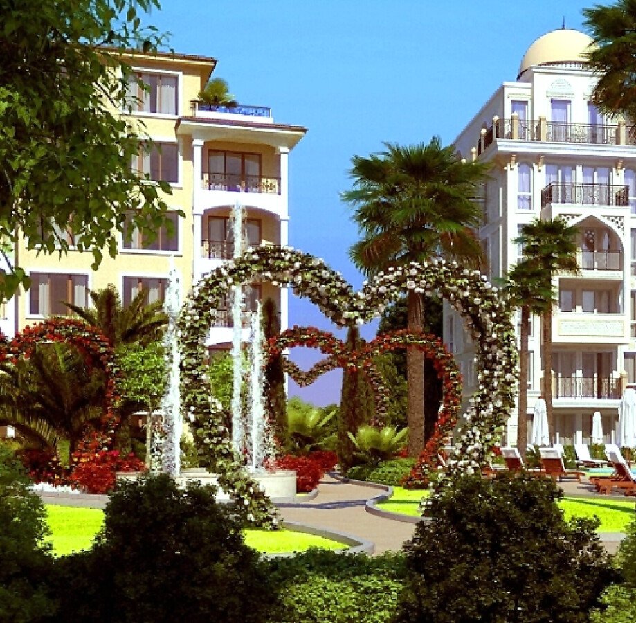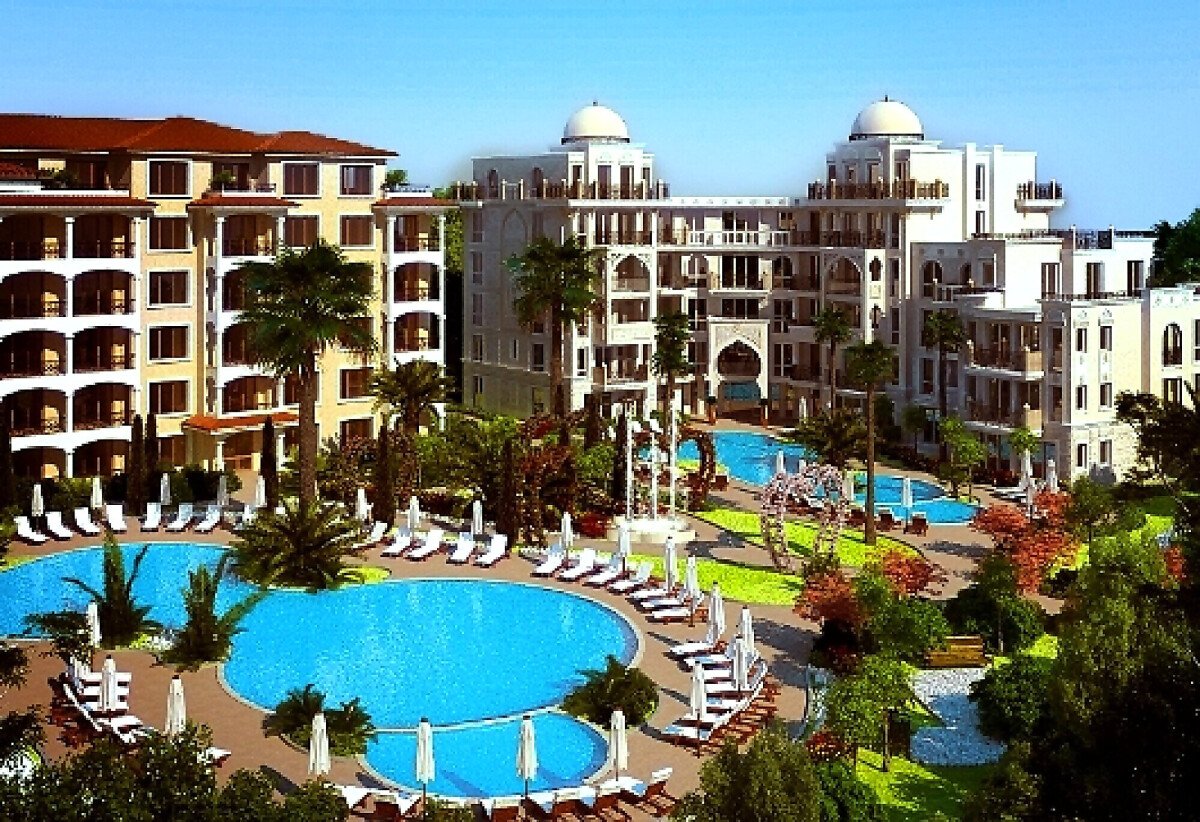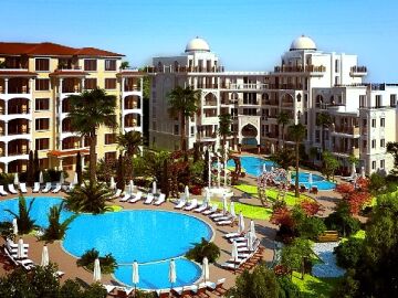 На територията на двата комплекса има няколко басейна с чадъри и шезлонги, детска площадка за игра, пленителна озеленена градина, красиви фонтани, беседки и пейки за отдих, безплатен паркинг и много други.
