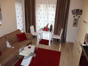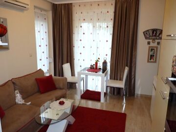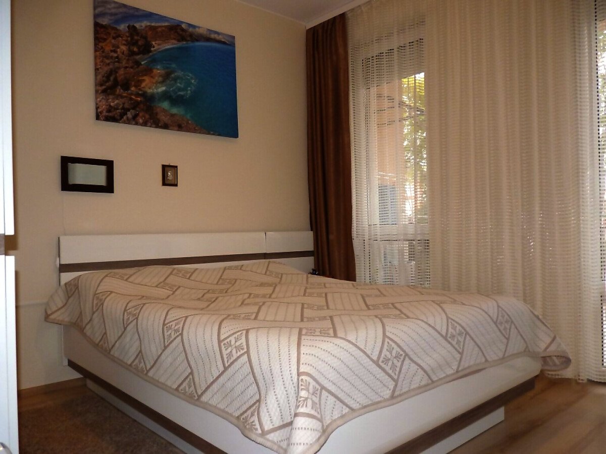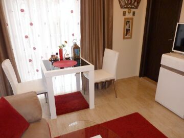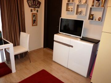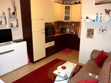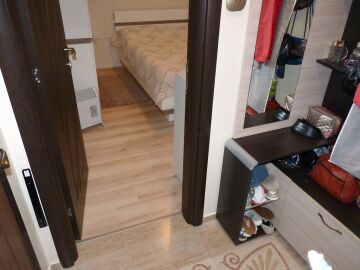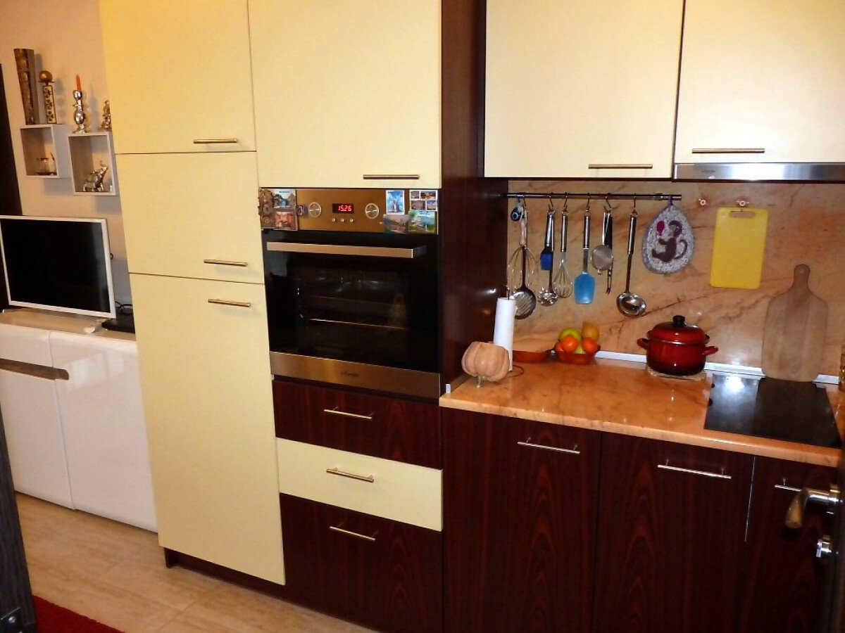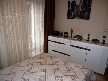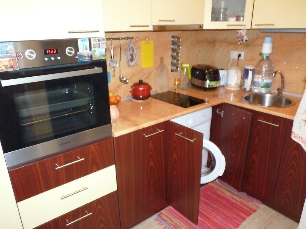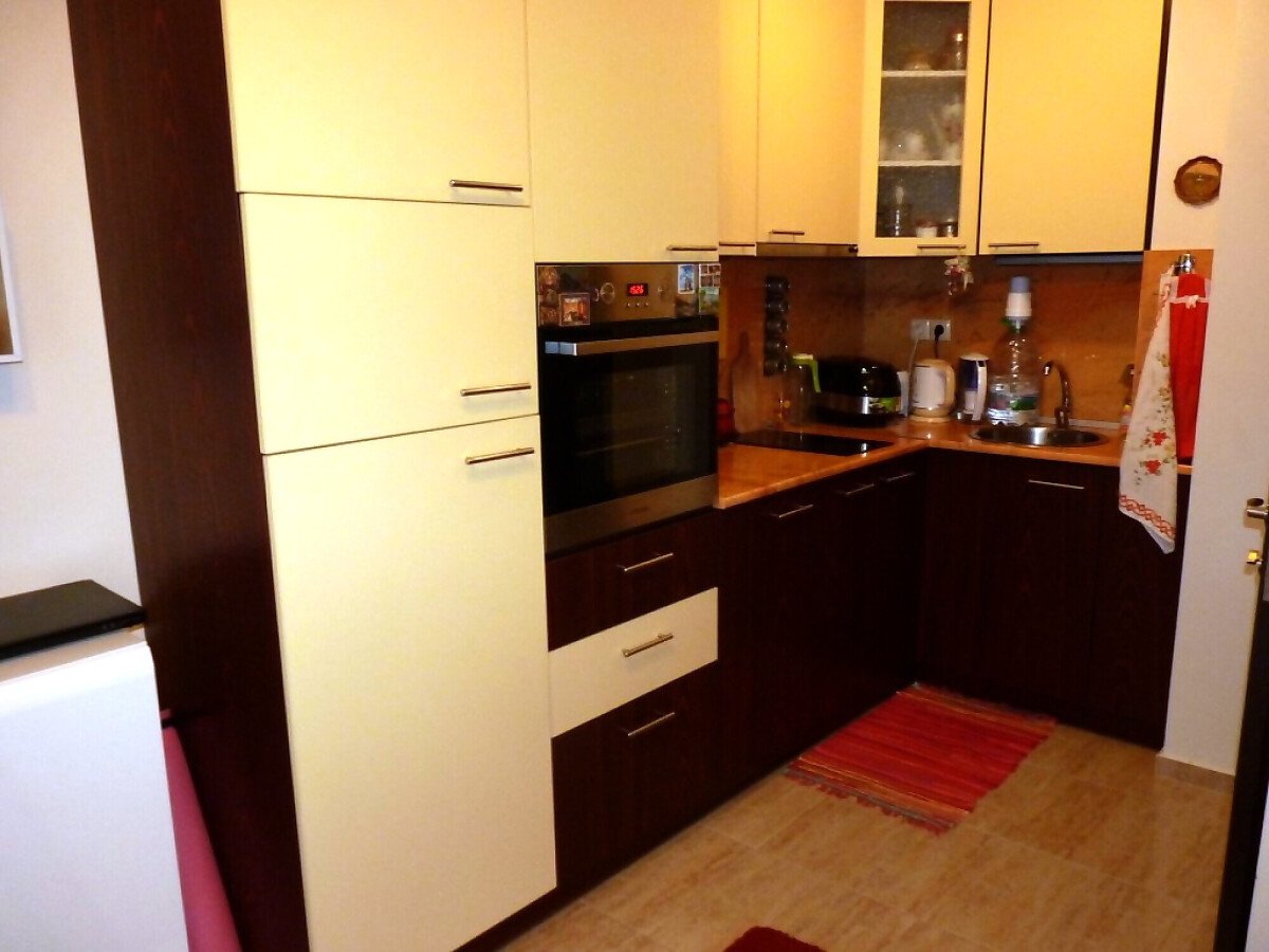 В кухнята има необходимата битова техника, а банята в апартамента е просторна и разполага с душ кабина.