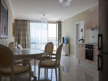 Жилището е с площ 90,40 кв.м и се намира на петият етаж в комплекса - разполага с удивителна гледка към морето.