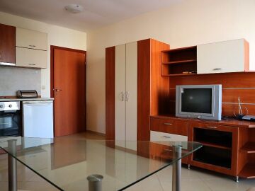 Апартаментът е обзаведен и се продава заедно с мебелите и битовата техника.
