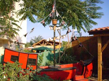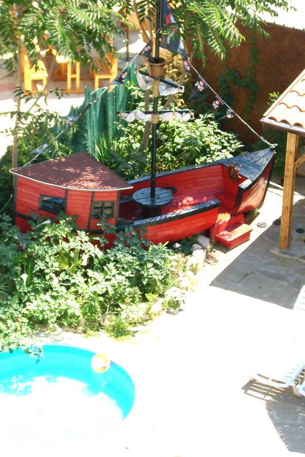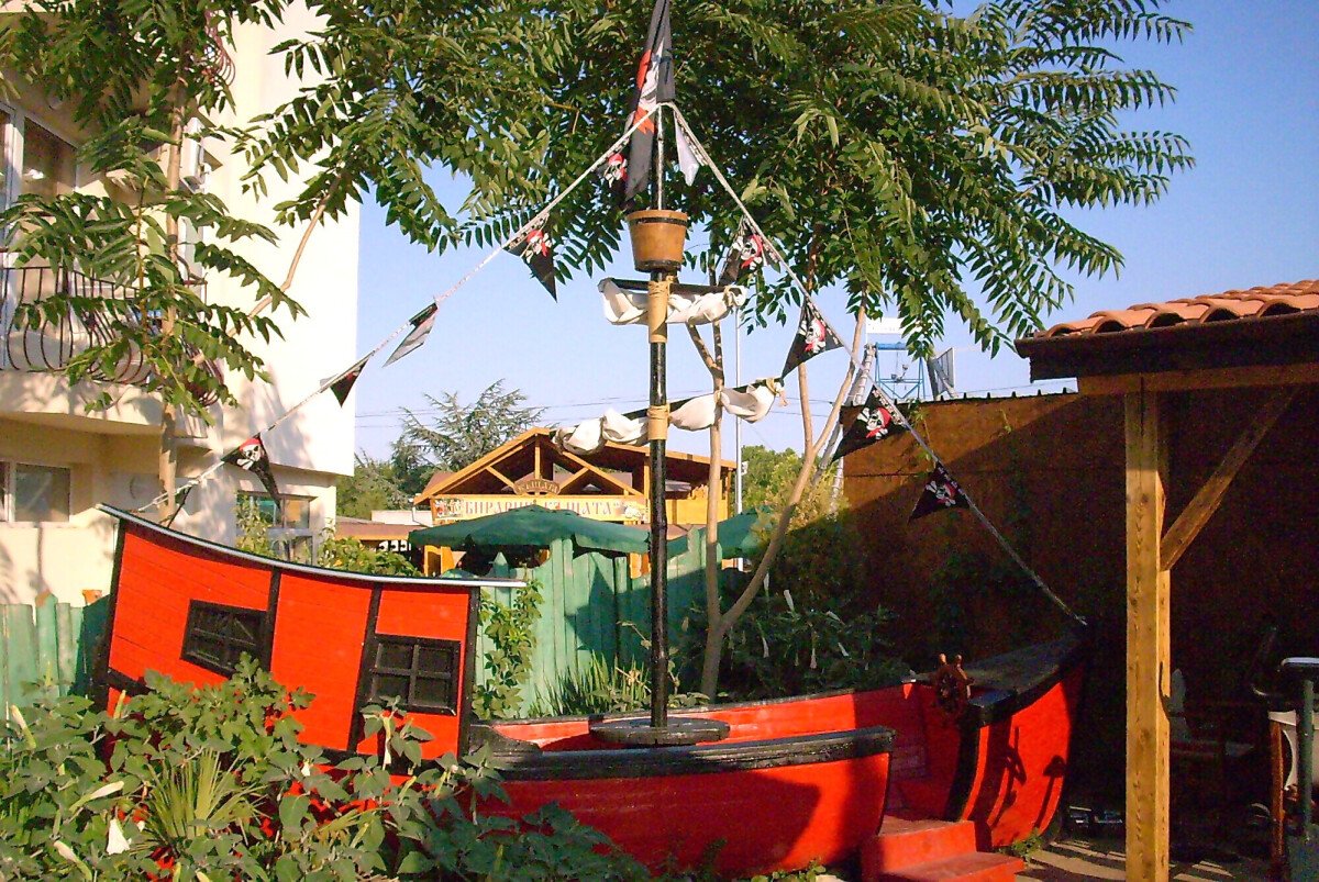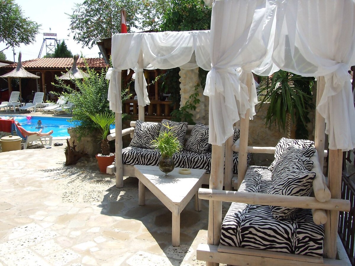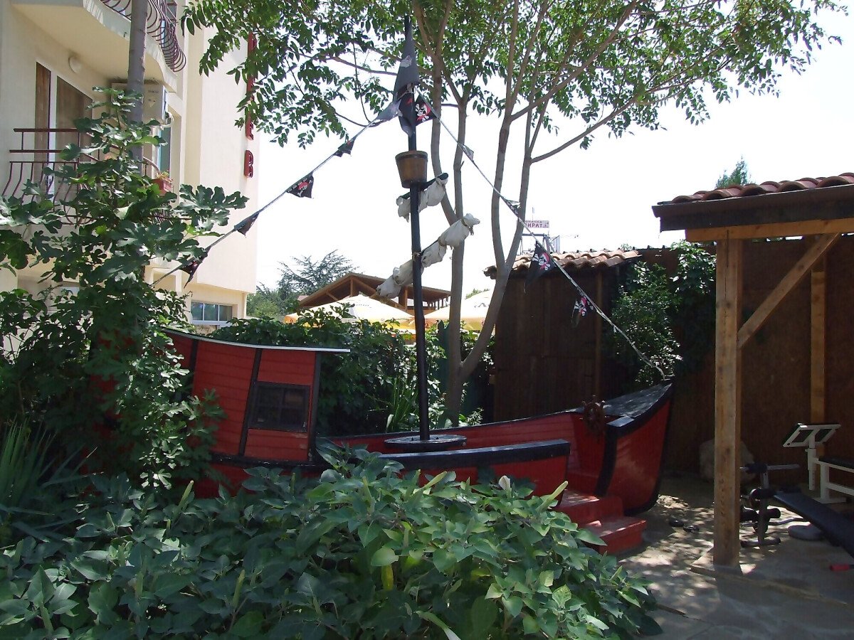 Гостите на хотела могат да се възползват и от външен бар с удобни шатри и капацитет 50-55 души, мини фитнес център и детски кът с пиратски кораб.