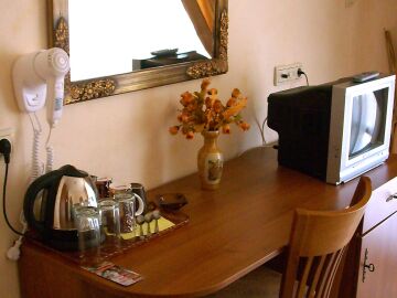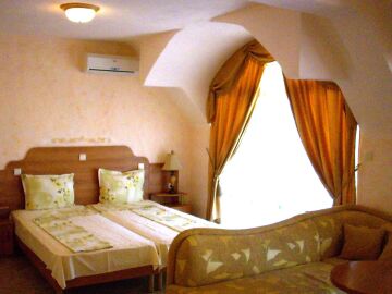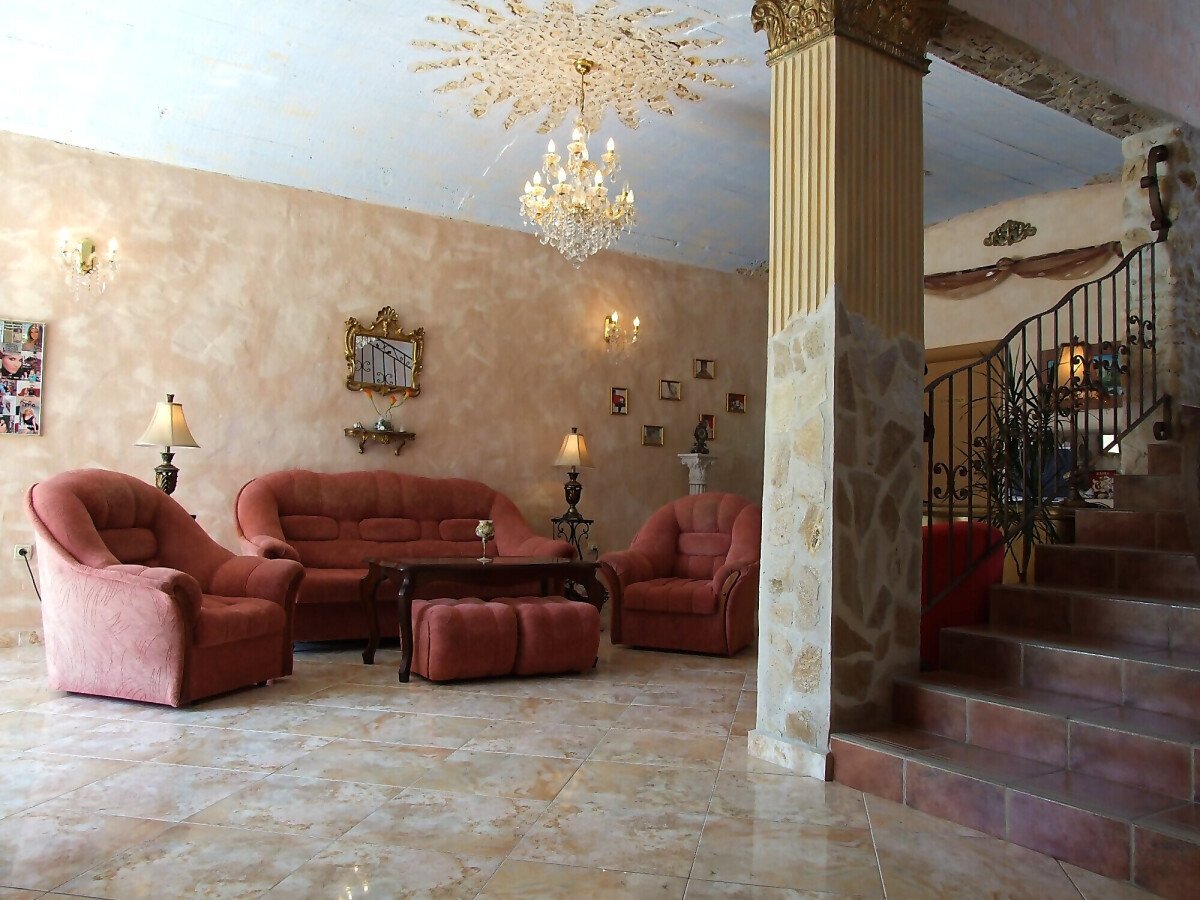 Хотелът е много уютен и добре поддържан. Има просторно фоайе с рецепция, украсено с римски колони, кристални полилеи и парапети от ковано желязо. Хотелът е оборудван с котелно помещение (20 кв.м), складово помещение, 2 стаи за настаняване на персонала и баня с тоалетна към тях.